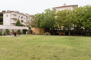 Uz hostel i pomoćni objekt nalazi se prekrasno uređen park s puno zelenila i sadržaja za djecu. Na popločenoj šetnjici kroz park nalaze se taktilne linije vodilje koje vode do klupa i stolova u parku. Područje cijelog parka vidljivo je s terase kafića tako da roditelji mogu istovremeno uživati u ispijanju kave i držati na oku svoju razigranu djecu.
