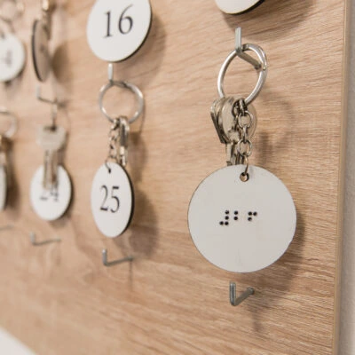 U ladici svakog stola gosti mogu pronaći kućni red preveden na Brailleevo pismo. Uz navedeno, natpisi na vratima i privjesak za ključeve primjer su univerzalnog dizajna, sadržeći natpise i na Brailleevom pismu i na uvećanom crnom tisku.