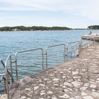 Ulaz na plažu je spušten, što omogućuje pristup osobama u invalidskim kolicima. Plaža je ravna i popločena kako bi omogućila slijepim i slabovidnim osobama što neovisnije kretanje, a sadrži taktilne smjernice koje vode prema stepenicama i ulazu u more.
